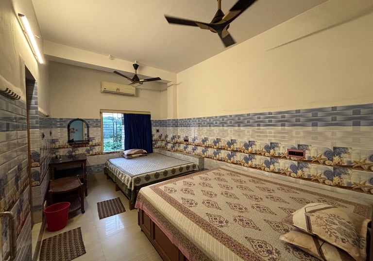 Enjoy a spacious double bed room with a serene ambiance and essential facilities for convenience.